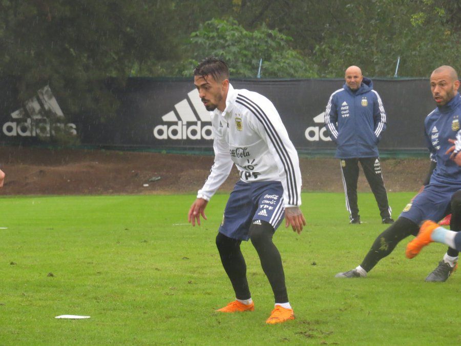 Con el objetivo de sincronizar los movimientos de salida en espacios reducidos, Sampaoli armó un trabajo de 10 vs 10 jugadores en el que estuvieron presentes los mismos cinco futbolistas que entrenaron toda la semana: Sergio Agüero, Mascherano, Manuel Lanzini, Salvio y Nicolás Tagliafico.