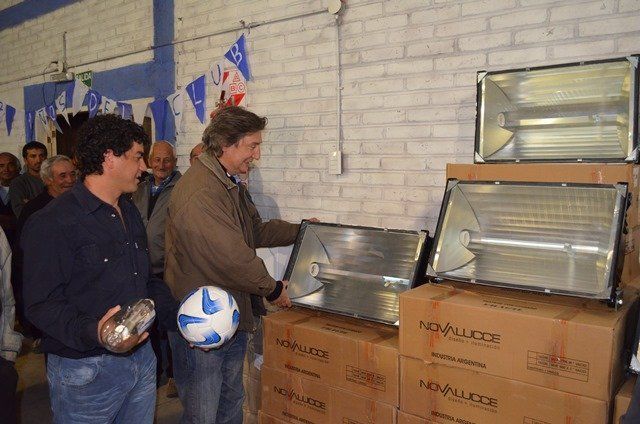 Gran cantidad de familias y pequeños jugadores estuvieron presentes en el acto de entrega de los reflectores y las pelotas, que fue presidido por Félix, el Presidente del club Manolo Gómez y el titular de la compañía eléctrica Cecsagal, Héctor Ambrosini.