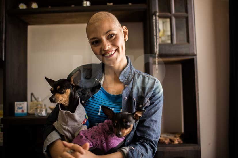 La idea, simple y pretenciosa a la vez: hablar sin tapujos sobre ello y si se puede, dejar un mensaje positivo, educativo. Y para ello nada mejor que ella, que recibe con su sonrisa cautivante a todos. Con dos de sus ocho perros en sus piernas, habló al inicio de lo que fue aparecer en tevé luego de un tiempo y con su cabeza calva y hablando del cáncer sin eufemismos.