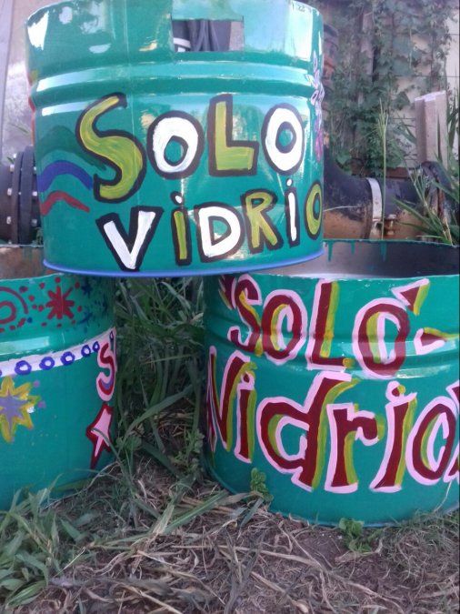 Estos recipientes son tachos cortados al medio y fueron intervenidos por los chicos del programa Verano Joven que participaron de la colonia en el Club Policial. "Con ellos, la mayoría son de Rincón, hicimos talleres y de apoco les fuimos explicando sobre la recolección diferenciada", agregó la funcionaria municipal.