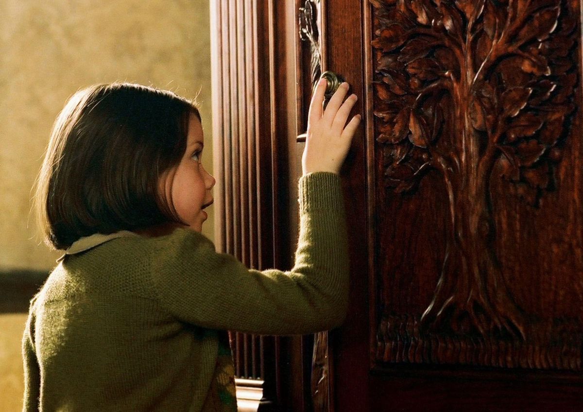 En la misteriosa casa, la más pequeña de los hermanos, Lucy, encuentra un ropero antiguo y solitario dentro de una habitación. Llena de curiosidad, Lucy ingresa al armario y aparece en un mundo mágico lleno de nieve llamado Narnia.