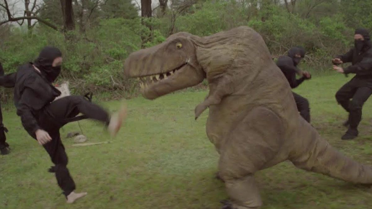 Nadie soñaba hasta ese momento que veríamos una película así. Pero la sinopsis oficial no me deja mentir: “Después de perder a sus padres, un sacerdote viaja a China, donde hereda una habilidad misteriosa que le permite convertirse en un dinosaurio. Al principio se sentirá horrorizado por este nuevo poder, pero una prostituta lo convencerá para usarlo y combatir así el crimen. Y los ninjas".