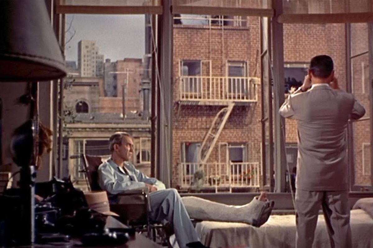 Jeff, un fotógrafo (Stewart, en otro papel impecable), ha sufrido un accidente y se ve obligado a permanecer en su departamento con su pierna enyesada. Lo que empieza como una distracción al espiar a los vecinos del edificio de enfrente se transforma en horror al ser testigo de un asesinato y termina involucrando a su bellísima novia Lisa (Kelly, en su segunda colaboración con Hitchcock). Así se plantean las dos historias del filme: la de amor y la del suspenso, con el asesinato.
