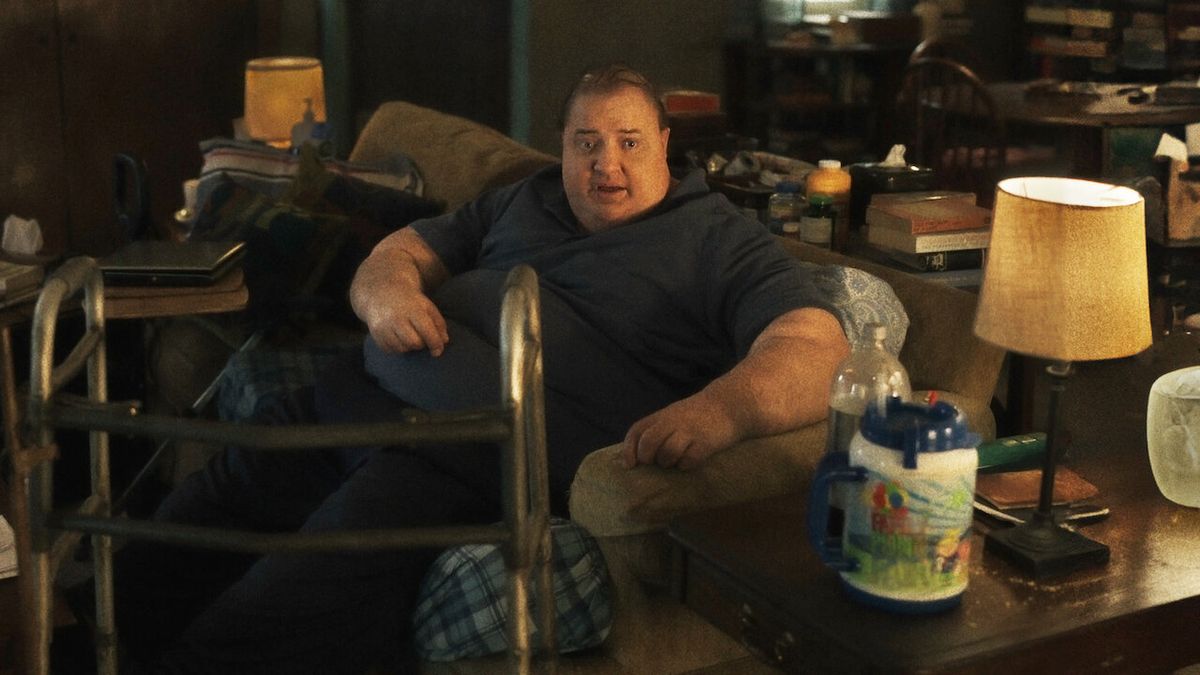 Se trata de La ballena ("The Whale" en su idioma original), una película estadounidense que se estrenó en los cines de Estados Unidos el 9 de diciembre de 2022 y llegó a Argentina en 2023. Por su papel protagónico, Brendan Fraser ganó el Oscar a Mejor actor principal. Este drama, además, se hizo del premio Oscar a Mejor maquillaje y peluquería.