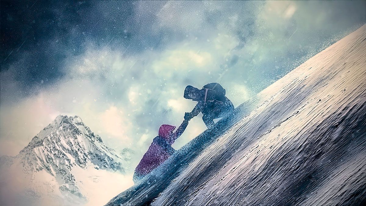 En su camino se encontró con un montañero a punto de morir, iniciando ambos una odisea por la supervivencia en condiciones climáticas extremadamente adversas.