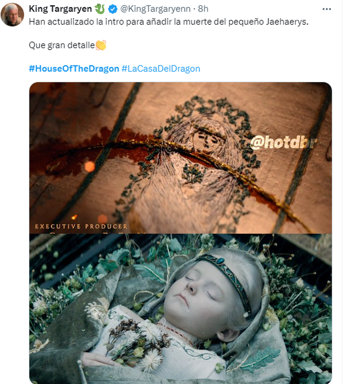 Si en el primer episodio llamó la atención la nueva presentación de House of the Dragon, en el tercero fueron varios los que notaron que había otra presentación. Esto se debe a que en el segundo episodio se mostró cómo moría Jaehaerys, el heredero al trono, y esto fue agregado a la intro de la serie de Max, que, como todos, saben, nunca se debe omitir.