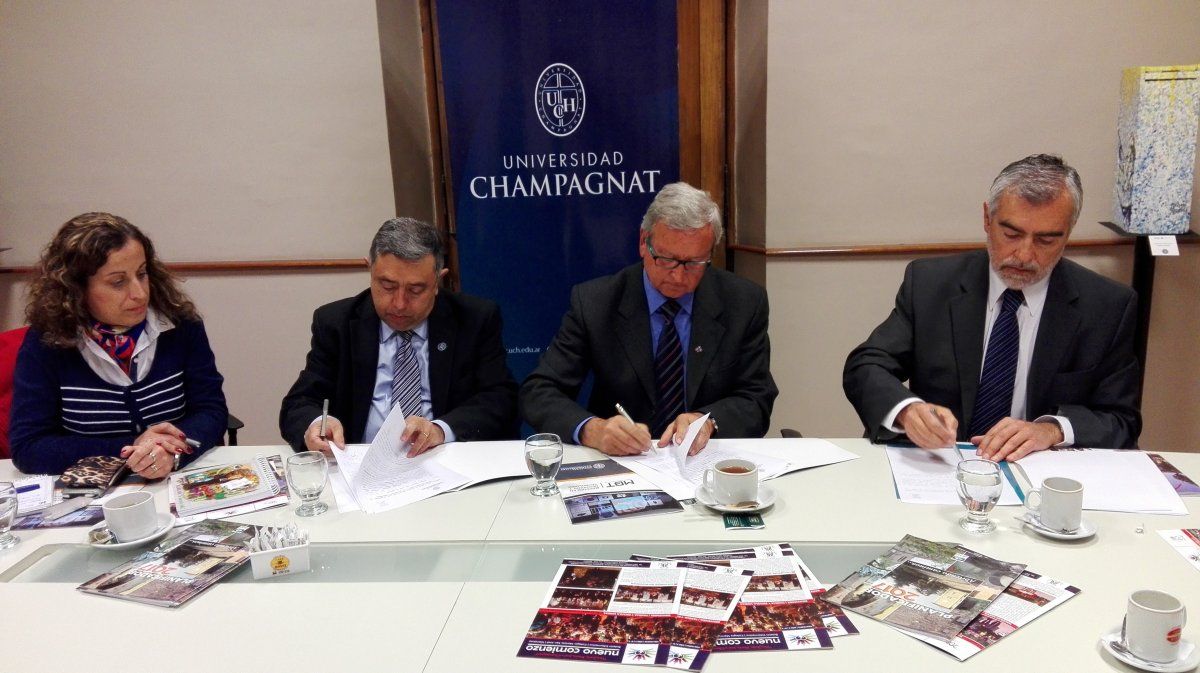 La Universidad Champagnat firmó un Convenio Marco con el Colegio Marista de Mendoza.Para celebrar el presente Convenio Marco de Cooperación, el Colegio Marista fue representado por su Director Hermano Eutimio Rubio Sáez y su Vicedirectora profesora Gabriela Benítez. En este acto, constituyendo a la Universidad esuvieron el Rector Licenciado Raúl Mercau y el doctor Jorge Giaquinta, Presidente de la Fundación Santa María.El objetivo de la rúbrica es la implementación de acciones tendientes a desarrollar en forma conjunta, proyectos de carácter académico, científico, tecnológico, social y cultural, para beneficio de ambas Instituciones. Además, se firmó el acta complementaria que establece la implementación de un sistema de becas para los empleados o hijos de empleados, y egresados del Colegio Marista, a efectos de incentivar el estudio y perfeccionamiento de éstos. El Sistema de Becas consiste en una beca del cincuenta por ciento (50%) del valor de la matrícula de inscripción. Asimismo becas del veinte por ciento (20%) sobre el valor de la cuota mensual de la carrera que se haya elegido, por el término de UN (01) año académico y becas completas a los Abanderados del Colegio Marista. Párrafo aparte merece que junto a la firma de este importante documento se leyó una emotiva carta enviada por el papa Francisco con motivo de celebrar los cien años del Colegio Marista en Mendoza.