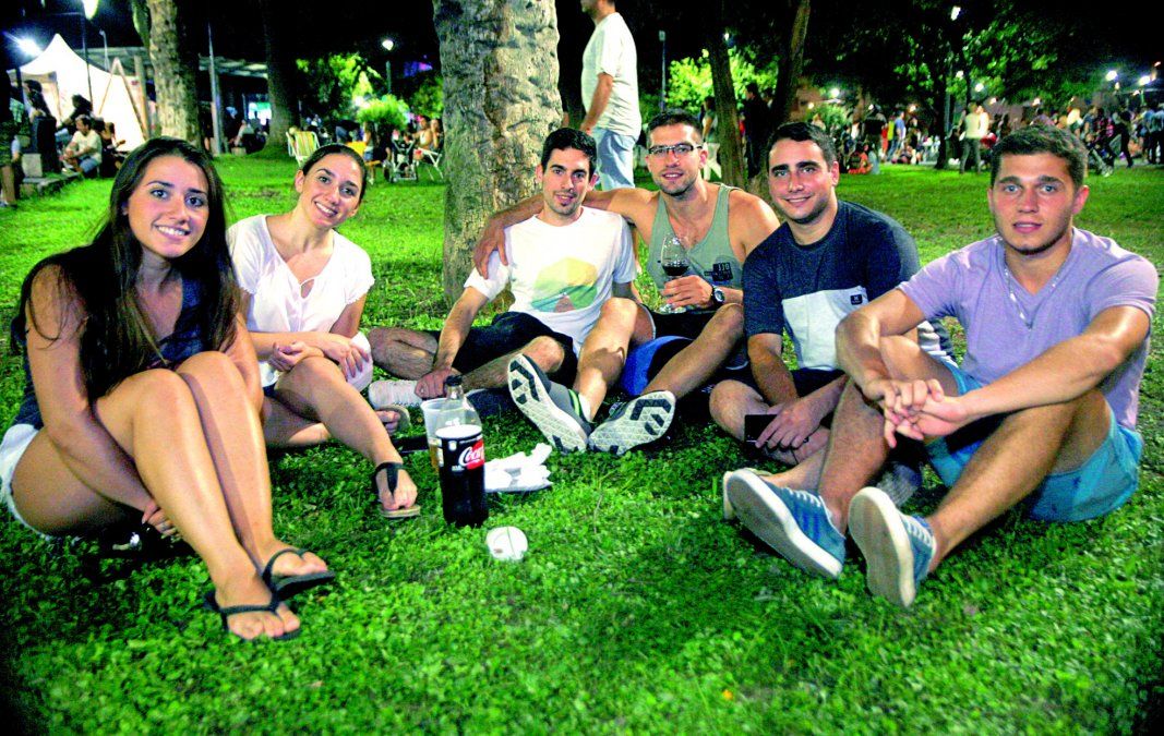 Relax en el pasto. Victoria y Emilia Chiófalo, Sebastián Sulia, Cristian Meonis, Ademir Gómez y Esteban Chiófalo.