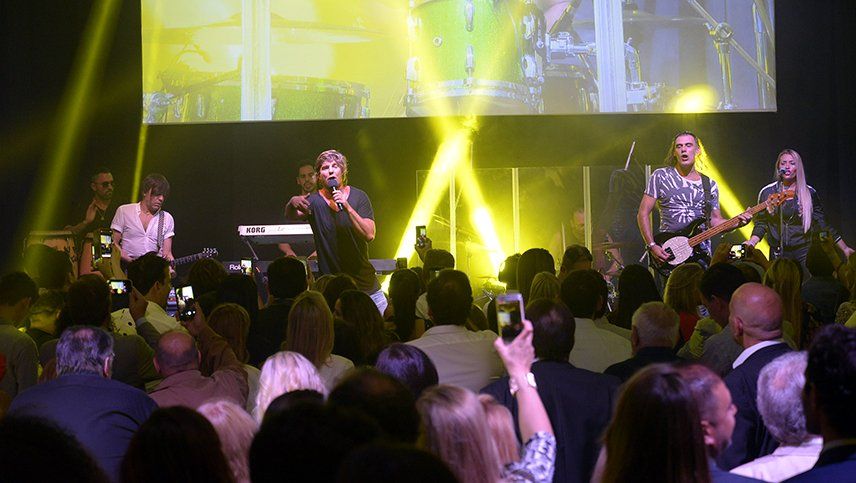 Las representantes departamentales y los invitados fueron sorprendidos con la presentación de la banda rosarina que a comienzos de los 90 se consagró con grandes éxitos y que hasta hoy sigue conquistando a sus fans.