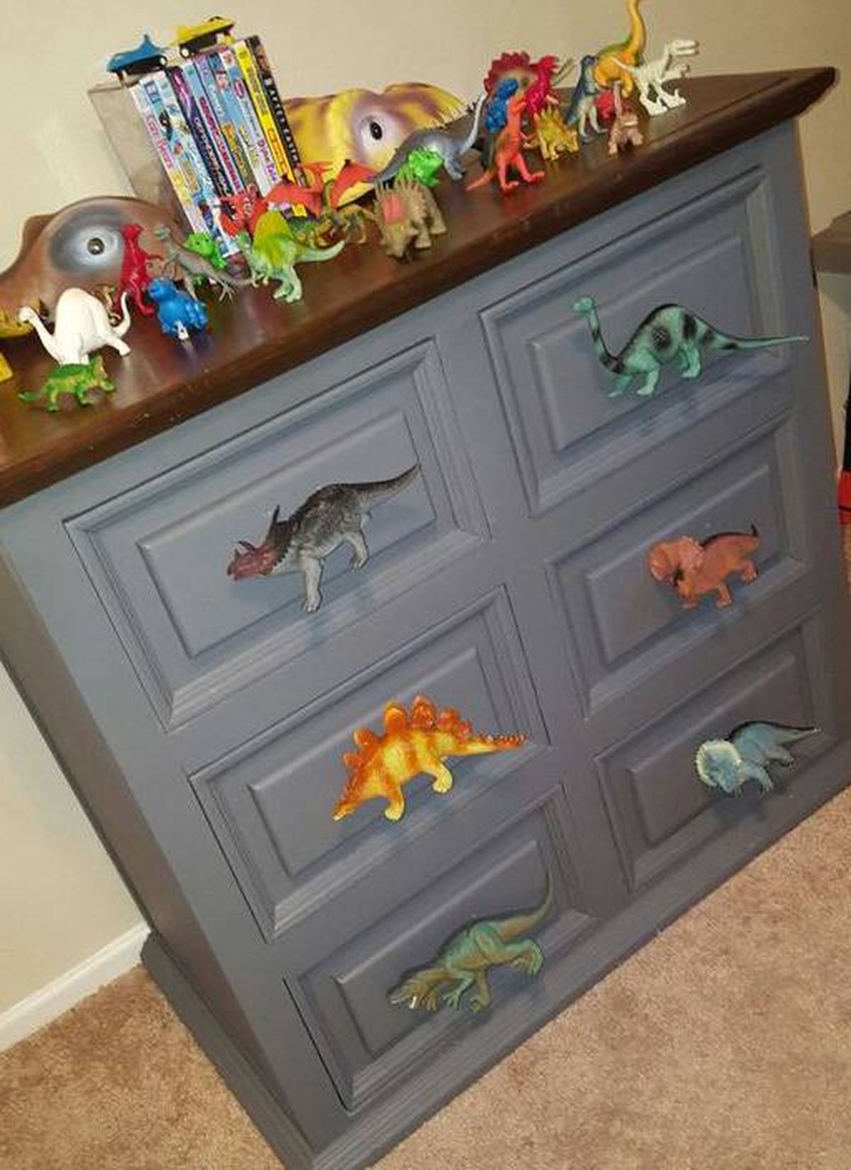 Si quieres puedes pintar los juguetes o dejarlos como están. Luego cambia las manijas del mueble por cada uno de los juguetes y listo. Tendrás una original y divertida fachada para cada mueble de tu hogar.