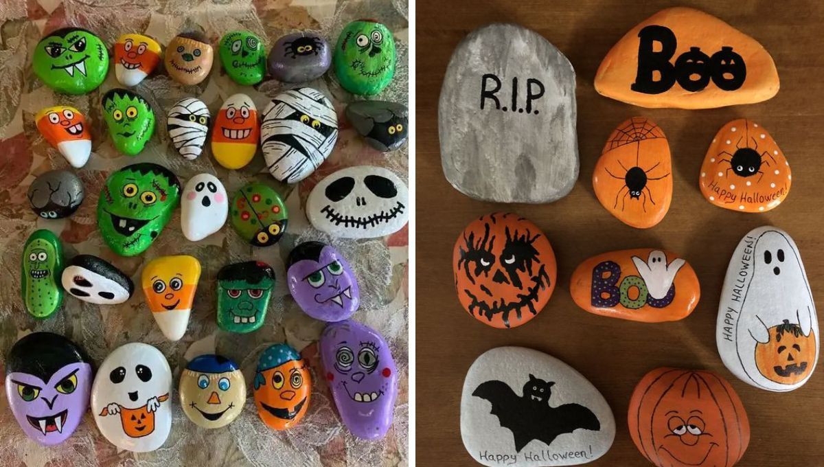 Otra opción sencilla e ideal para realizar con los más pequeños de la casa es pintar piedras. Puedes hacer los diseños que más te gusten: fantasmas, Frankenstein, Jack de "El extraño mundo de Jack", momias, drácula, arañas, calabazas, etc.
