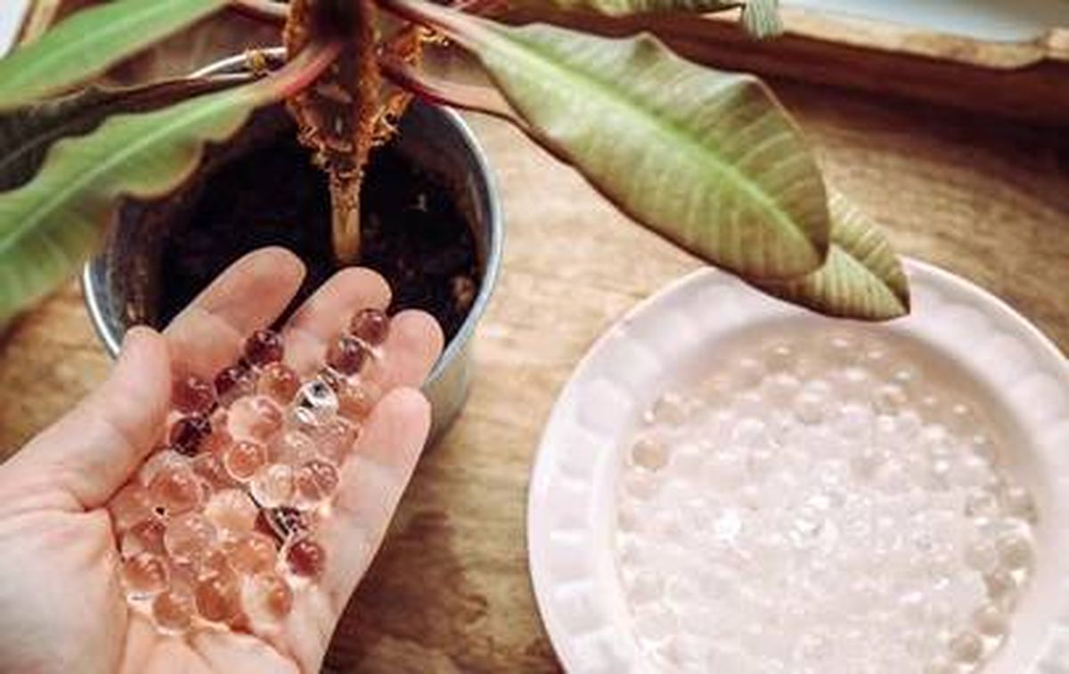 Una opción muy útil es el hidrogel compuesto por agua y nutrientes que va regando de a poco las plantas. Generalmente vienen como pelotitas y para que funcionen deberás sumergirlas en agua entre 2 y 12 horas, Luego las colocas sobre las macetas y cada vez que la tierra se seque el agua gelificada se liberará de a poco.