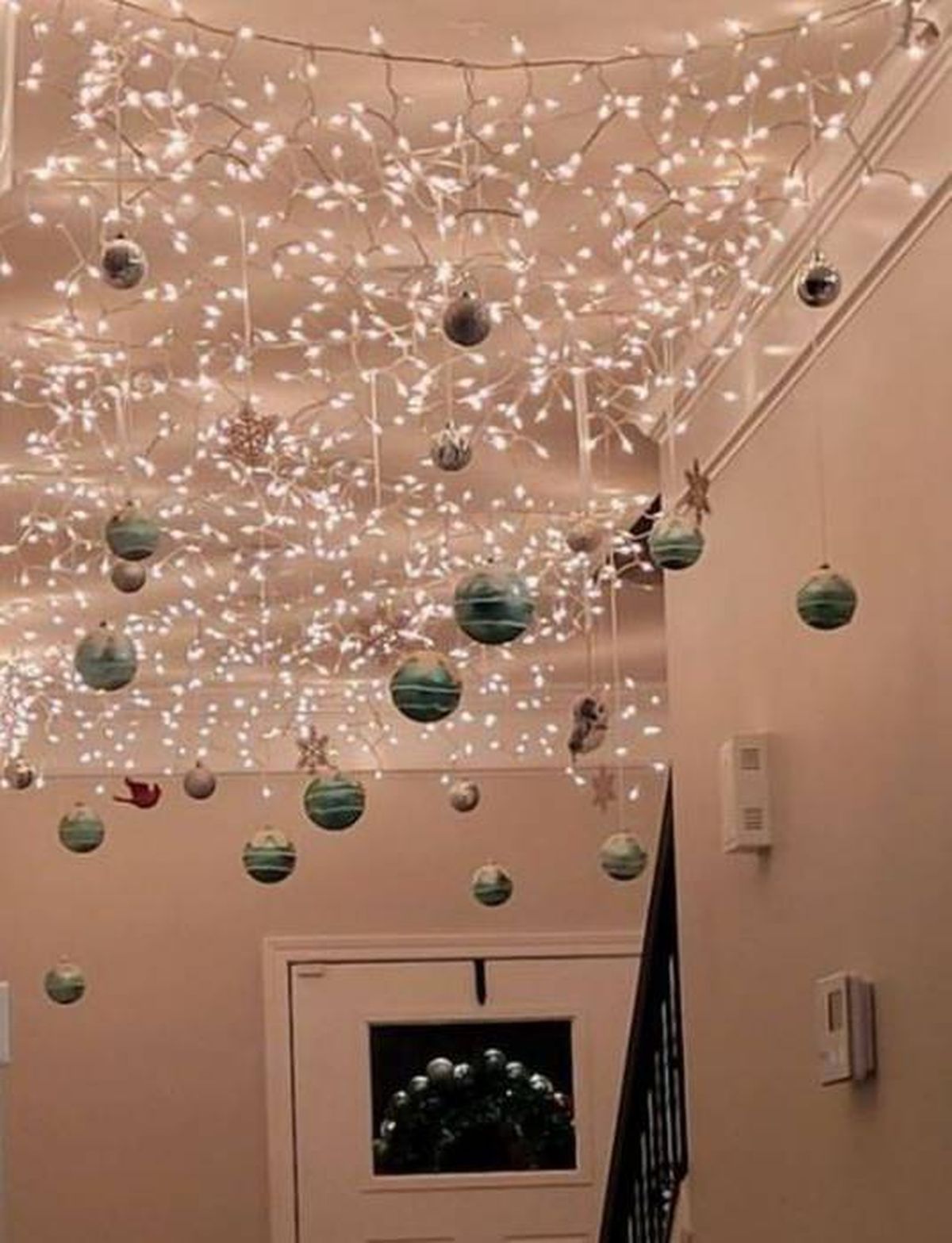 Una opción hermosa que hará lucir el espacio será colocando luces navideñas en el techo. Puedes distribuirlas de una punta a la otra de manera que quede todo el techo cubierto y quedará una especie de enrejado con las luces. Es ideal para armarlo en la galería, en un pasillo o en el jardín.