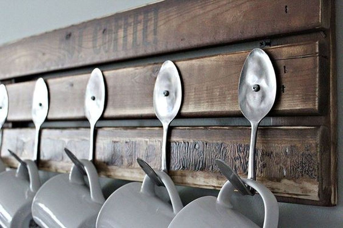 - Cubiertos: una gran opción es convertir aquellos tenedores, cucharas y cuchillos en un original perchero. Podrás colgar los repasadores, la manopla del horno o hasta las tazas. Para eso deberás conseguir un tabla de madera y en ella pegar los cubiertos doblados.