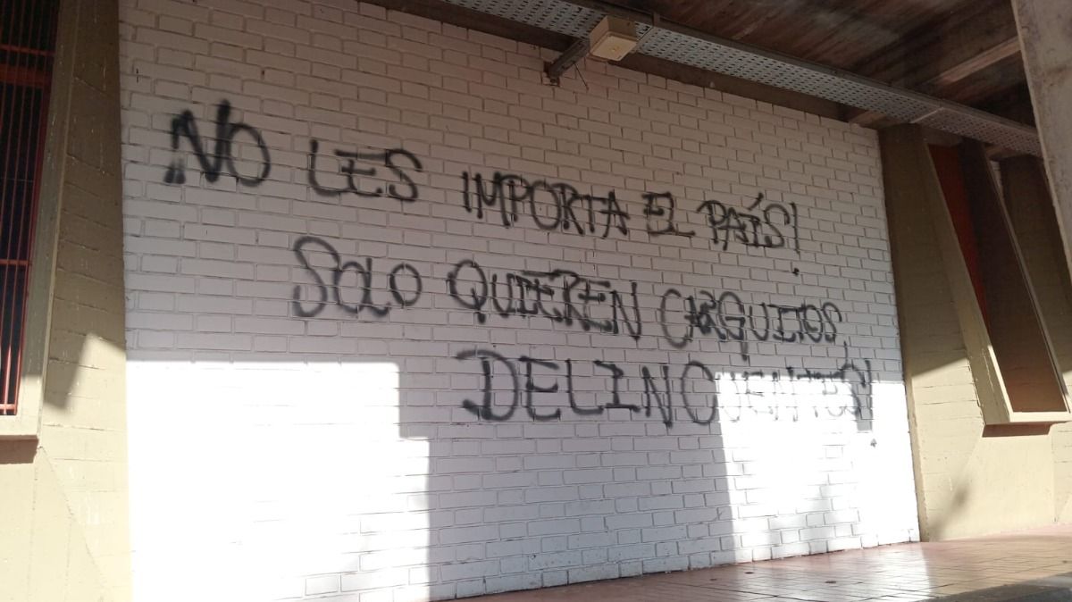 El clima previo al balotaje se pone denso, complicado y las instituciones educativas no son ajenas a esto. Así, esta mañana, la Facultad de Ciencias Políticas y Sociales de la UNCuyo amaneció con sus paredes vandalizadas con leyendas violentas y discriminatorias. Entre otros escritos, se puede leer "zurdos de mierda", "se termina la joda, roñosos" y "Chau parásitos progres y feminazis".