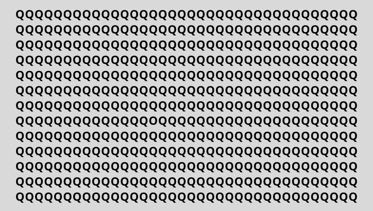 En esta oportunidad, el acertijo visual consiste en encontrar la letra “O” escondida entre muchas “Q”, un reto que parece imposible a primera vista. La repetición de las letras crea un patrón confuso y desorientador, pero si las personas se detienen a mirar con atención, la letra “O” aparece camuflada en el lugar correcto, lista para ser descubierta por quienes concentran la mirada.