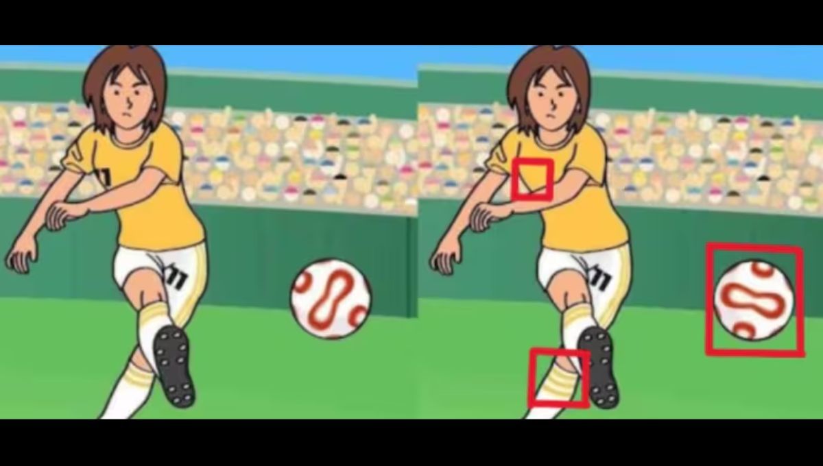 Un acertijo visual es una entretenida forma de ejercitar la mente, y en este caso, desafía a las personas a encontrar tres sutiles diferencias entre dos imágenes casi idénticas de una jugadora de fútbol.