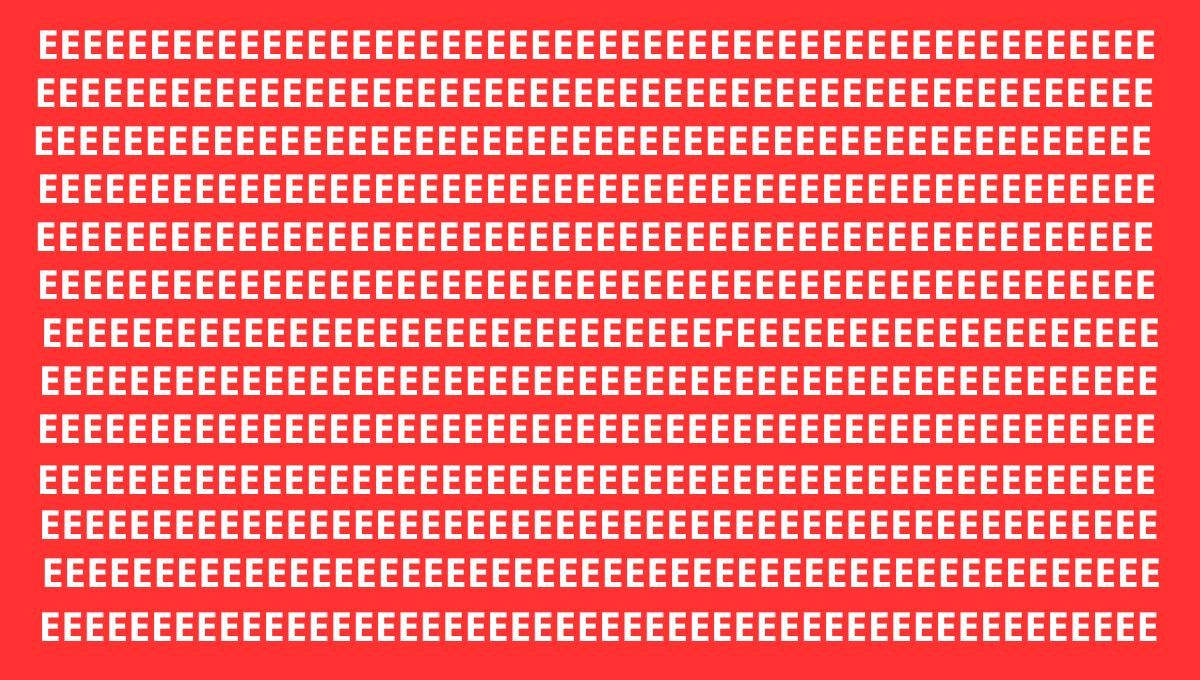 En este acertijo visual, una sola "F" se encuentra camuflada entre múltiples letras "E". El desafío consiste en hallarla en el menor tiempo posible. Si logras encontrarla rápidamente, en menos de 15 segundos, significa que tienes una gran capacidad de observación y atención a los detalles. Tómate un momento para analizar cada parte de la imagen. La clave está en mirar con calma y cambiar de perspectiva si es necesario.
