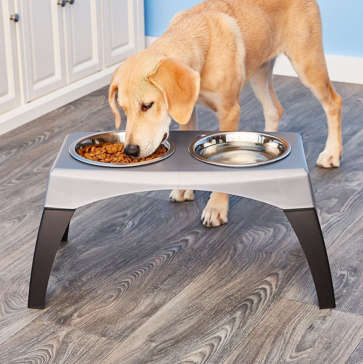 Según indican, lo ideal es hacer uso de comederos elevados parecidos a una pequeña mesa con platos incrustados dentro de una madera a la altura del pecho de tu mascota.
