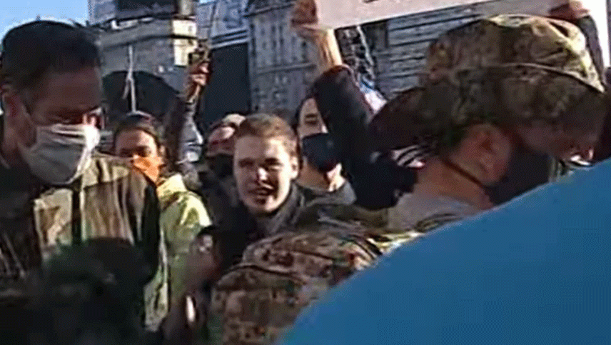 Entre ellos estuvo el chico de 19 años que nuevamente se acercó hasta el móvil para agredir al personal de prensa y fue filmado. Además, compartió orgulloso en sus redes un video en el que se lo escucha increpando e insultando al periodista Ezequiel Guazzora, que ante los ataques violentos de los militantes macristas, tuvo que ser protegido por la Policía de la Ciudad.