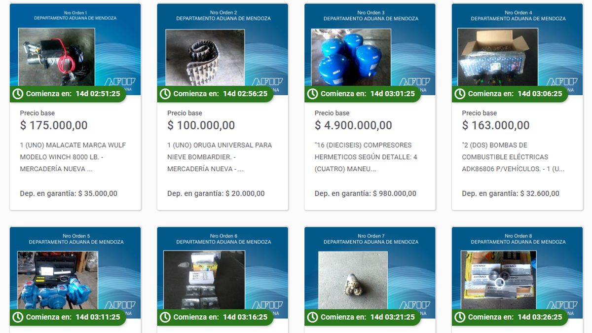AFIP anunció que el 18 de julio subastarán mercadería retenida por la Aduana de Mendoza. El remate será con modalidad electrónica por intermedio del Banco Ciudad de Buenos Aires, el encargado de estas operaciones.