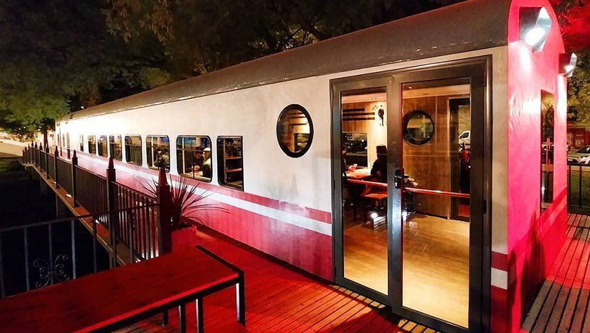 La cervecería tiene dos viejos vagones de ferrocarril, que se adaptaron para recibir a los clientes.