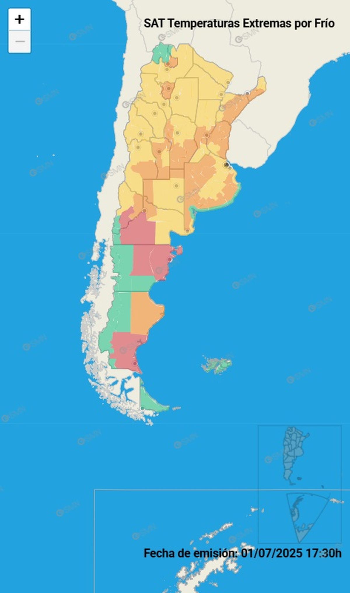 La gran mayoría del país se encuentra en alerta por la llegada de temperaturas extremadamente frías este miércoles 2 de julio. El Servicio Meteorológico Nacional emitió un alerta rojo para cuatro provincias por la llegada de temperaturas muy bajas en estas zonas.