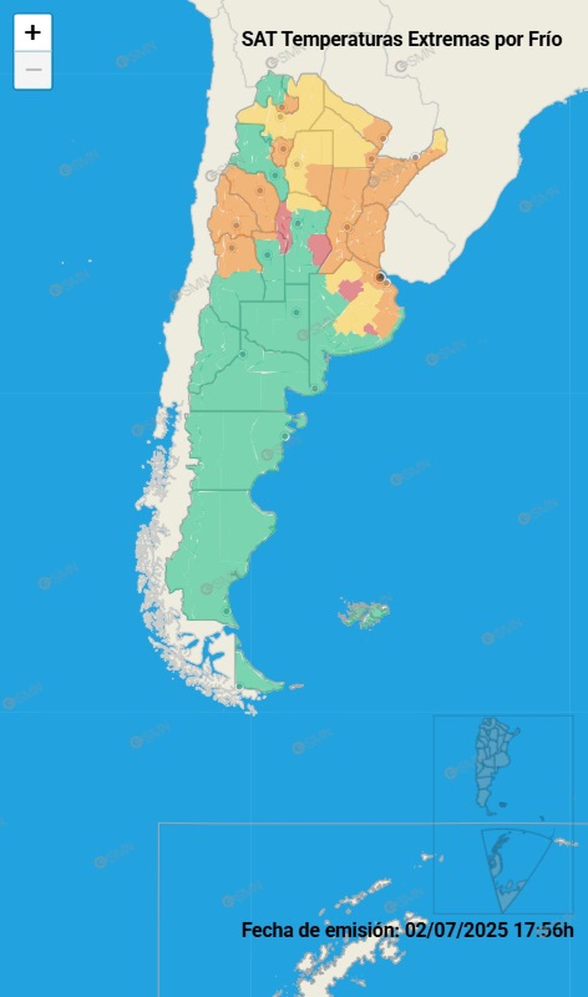 El Servicio Meteorológico Nacional emitió un alerta por la llegada de temperaturas extremamente frías en las provincias de Córdoba, Buenos Aires y San Luis. A nivel global, existen evidencias contundentes de los riesgos a la salud debido a la exposición prolongada a temperaturas muy elevadas o muy bajas. El SAT-Temperaturas Extremas es una herramienta que anticipa a la población acerca de situaciones meteorológicas extremas de temperaturas y sus posibles efectos en la salud y mortalidad.