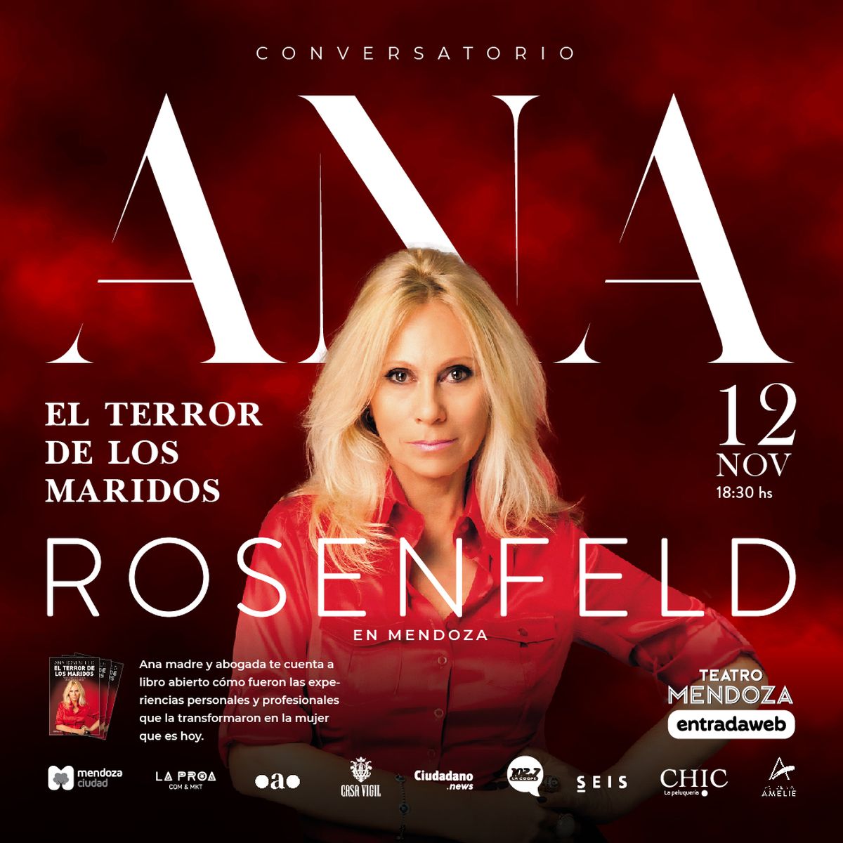 En el Teatro Mendoza se llevará a cabo el conversatorio "El terror de los Maridos", con la reconocida abogada argentina Ana Rosenfeld, quien compartirá su perspectiva única sobre los 3 roles fundamentales de la mujer en la sociedad actual: personal, profesional y social.
