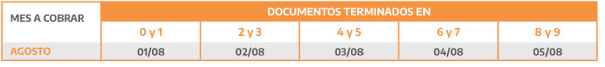 - DNI terminados en 8 y 9: viernes 5 de agosto.