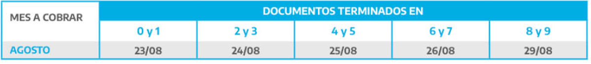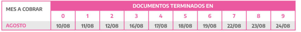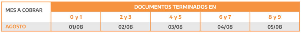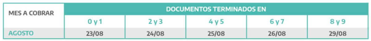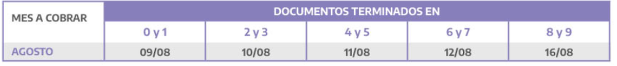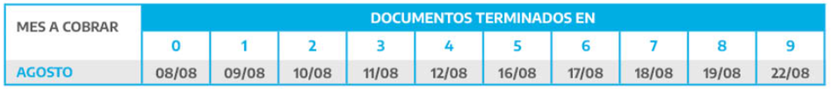 ANSES paga en días correlativos y según la finalización del documento, pero en agosto hay una modificación por el feriado del 17 de agosto, que se pasa al lunes 15.