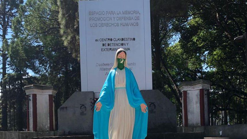 En la muestra de arte "Para todes, tode" la virgen de la medalla milagrosa con un pañuelo verde del aborto legal pintado en su rostro causó polémica y volvió a dividir las aguas entre quienes están a favor y en contra.