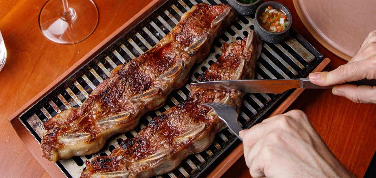 A diferencia de las costillas tradicionales, que por lo general son anchas y de unos 5 centímetros de espesor, el asado banderita no sobrepasa los 1 o 2 centímetros.