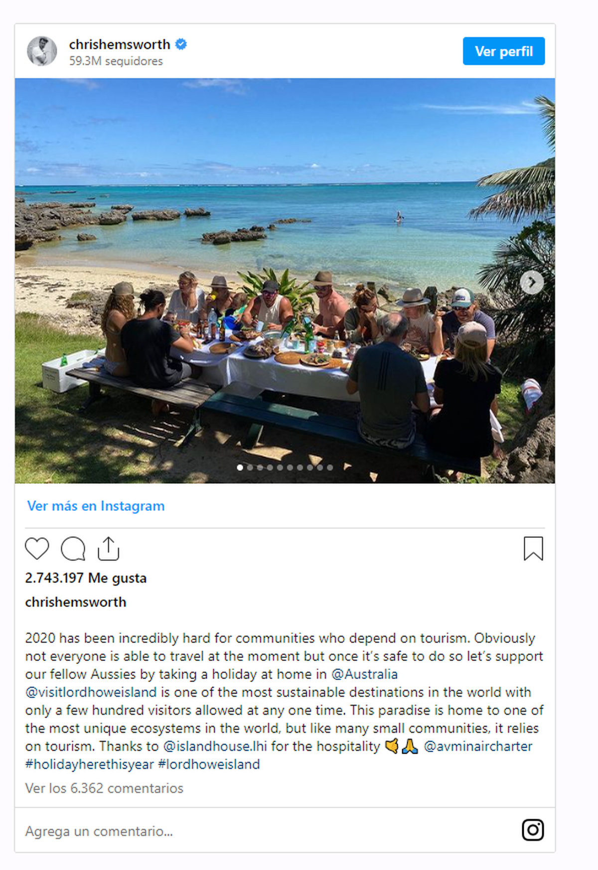 Chris Hemsworth y Elsa Pataky han elegido la paradisiaca isla Lord Howe para tomar un descanso junto a sus hijos. Este es un destino turístico único y reconocido de Australia continental, se destaca por sus playas vacías y su enfoque por la conservación natural.