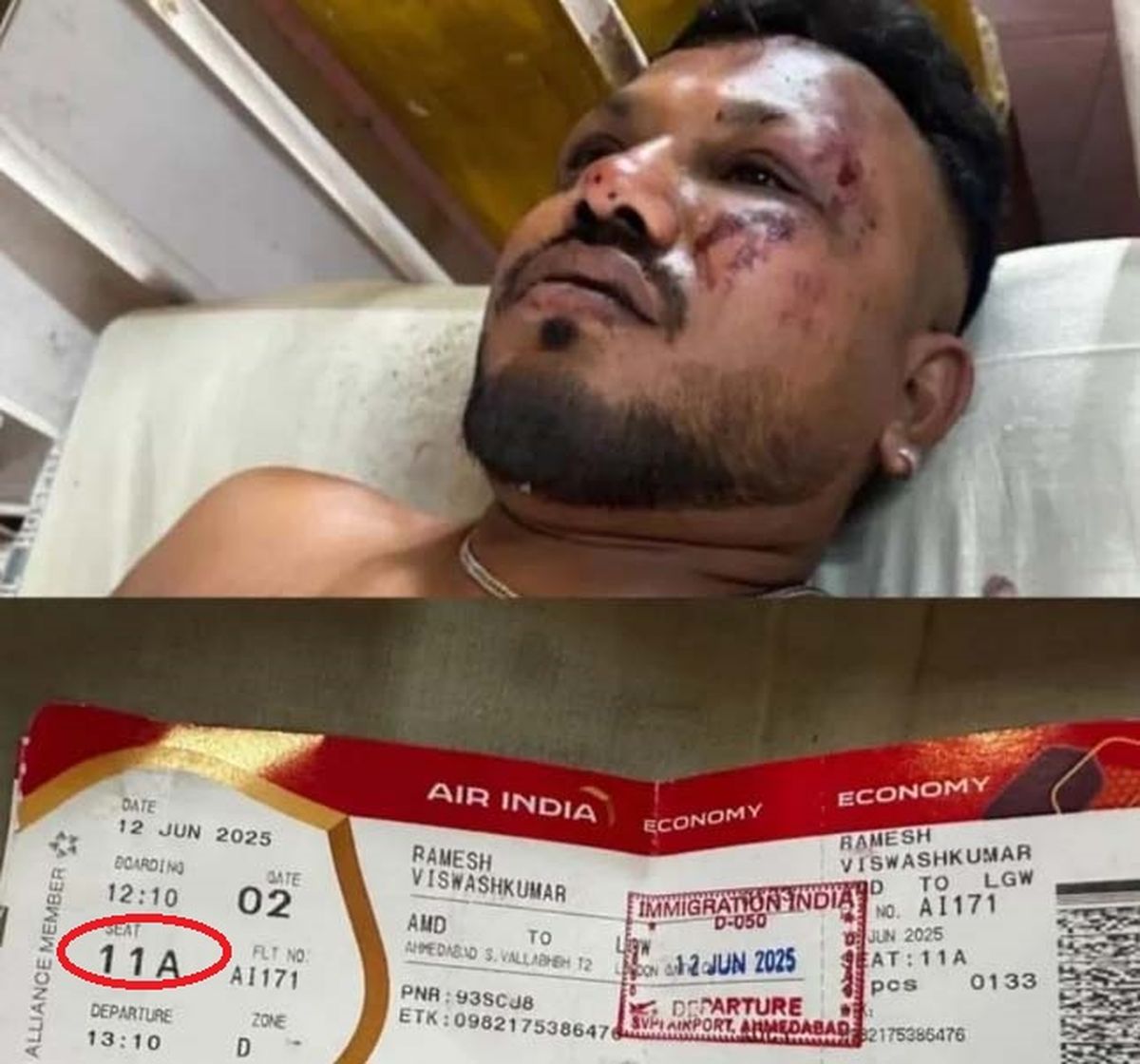 El único pasajero hallado con vida es un ciudadano británico de 40 años, que se encontraba en la India visitando a su familia. El hombre fue rescatado con vida y todavía conservaba su pasaje, en el que se podía leer que viajaba en el asiento 11 del Boeing 787.