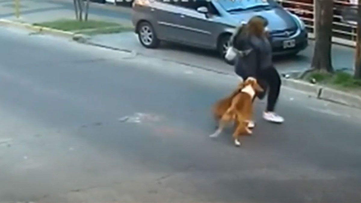 La mujer salió hacía el medio de la calle y aparece otro perro que también comenzó a atacarla y a los pocos segundos, un tercer animal se sumó y le mordió las piernas, provocándole un desgarro muscular.