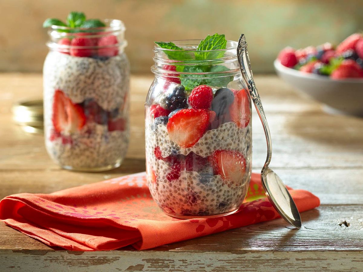 - Budín de chía: llenar medio vaso de semillas de chía y agregar jugo de frutas o leche vegetal. Dejar reposar por una noche en la heladera para consumirlo en la mañana siguiente.