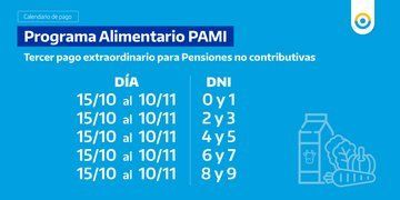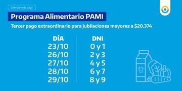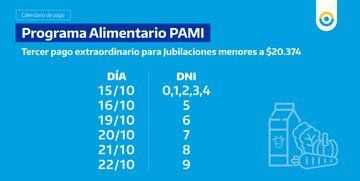 A partir de éste jueves 15 de octubre comenzará el tercer pago extraordinario a jubilados del Programa Alimentario PAMI que va desde los $1.600 y remplaza a los bolsones de alimentos.