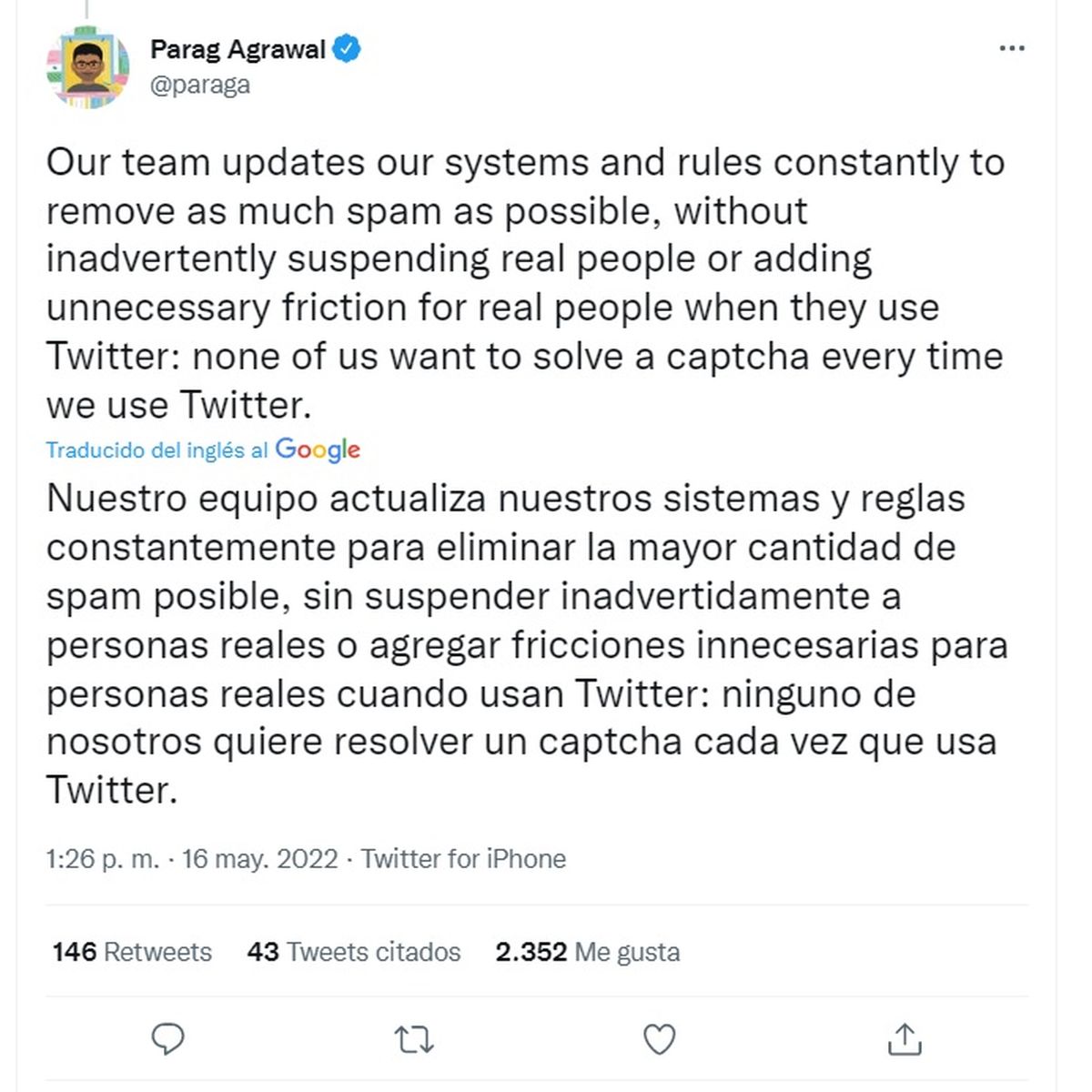 Agrawal expresó que "saben que no son perfectos para detectar spam", y que esa la razón por la que, después de todo el trabajo que llevan adelante, "algunos todavía se les escapan".