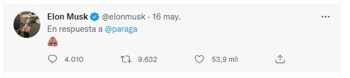 Pero en este nuevo capítulo de intercambios entre Musk como ¿futuro? dueño de Twitter y sus actuales directivos, el multimillonario respondió con un "emoji de caca", como síntesis gráfica a la explicación que brindó Agrawal.