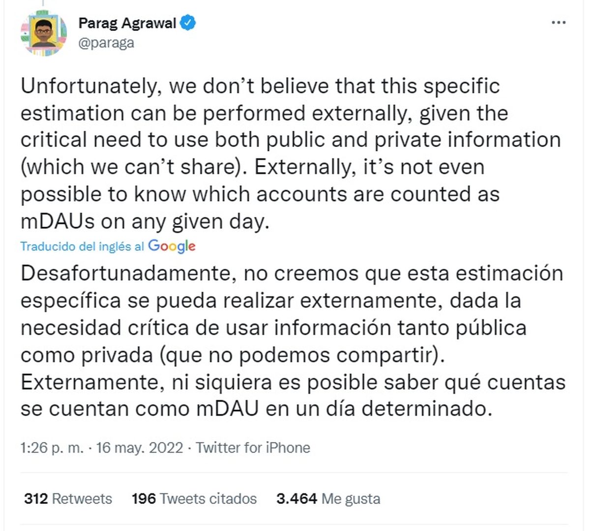 Fue enfático en afirmar: "Hay MUCHOS detalles que son muy importantes detrás de esta descripción de alto nivel. Compartimos una descripción general del proceso de estimación con Elon hace una semana y esperamos continuar la conversación con él y con todos ustedes.