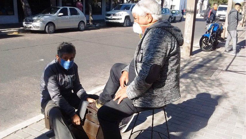 Mañana soleada. La principal calle comercial de la ciudad cabecera del mendocino departamento de General San Martín tiene el ritmo como si fuera de un sábado tempranero. La mayoría de los comercios, salvo los bares, están abiertos pero casi sin clientes y la gente, de apuñados pequeños, deambulan por las veredas. La mayoría lleva bolsas de compras y todas van con la mitad de su identidad tapada con barbijos por el coronavirus.