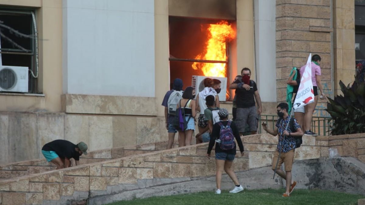 Primero fue el Palacio de Justicia, donde se arrojaron piedras y se rompieron vidrios, también hubo pintadas y se improvisó un incendio. Luego, se dirigieron hacia Casa de Gobierno en donde los daños fueron más grandes para, finalmente hacia la noche, trasladarse hasta la Legislatura e incendiar parte del interior y el exterior del lugar.
