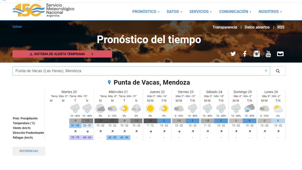 El pronóstico meteorológico del Servicio Nacional (SNM) anticipa para este martes por la tarde y la noche nevadas en alta montaña del lado argentino.