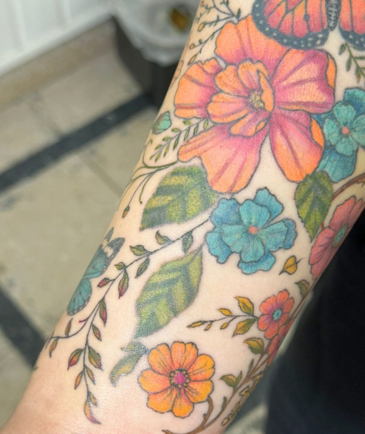 A lo largo de su trayectoria, Chechu se fue “amigando con las paletas de colores”, explorando texturas, tonos y técnicas que la llevaron a perfeccionar un estilo propio. Su arte es color, piel, vida y contención. Detrás de cada tatuaje hay una historia, un proceso, un renacer.