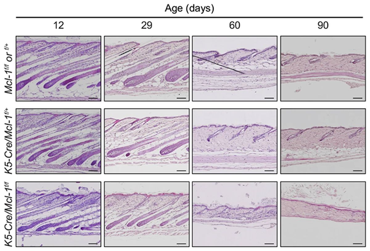 Los folículos capilares atraviesan ciclos de reposo y crecimiento, donde MCL-1 desempeña un papel crucial durante la fase de activación. La proteína no parece afectar el período de descanso ni el desarrollo inicial de los folículos pilosos, pero sí interviene decisivamente cuando estos "despiertan" para generar nuevo cabello.