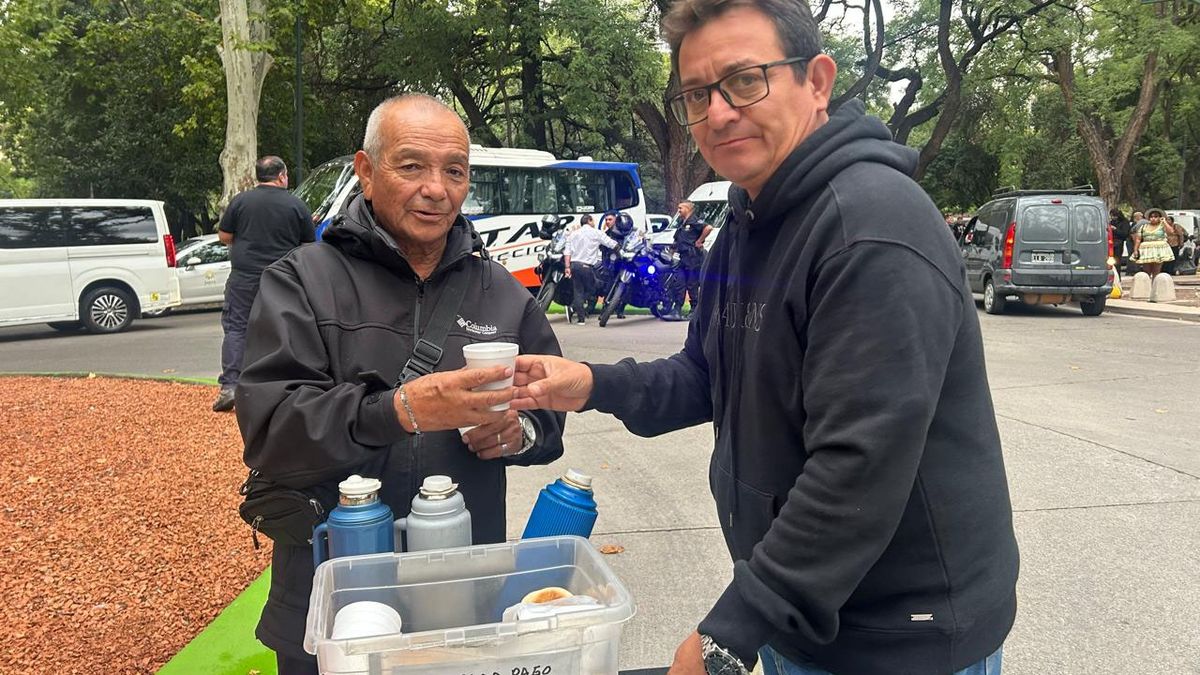 Isidro Jorge Álvarez llegó desde Carrodilla. “Me levanté a las 5 y salí para acá con el café y las tortitas, que se venden a dos mil pesos el combo”, contó.