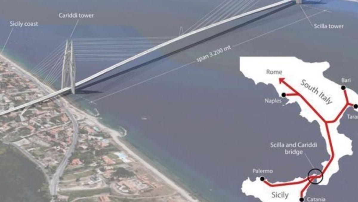 - Se proyecta para llevar tres carriles vehiculares en cada dirección y dos vías de tren, concebido como una arteria que puede soportar hasta 6000 vehículos por hora y 200 trenes diarios. En la práctica, lo que hoy toma horas, el cruce en ferry entre Sicilia y Calabria, podría transformarse en un paseo de 10 o 15 minutos.