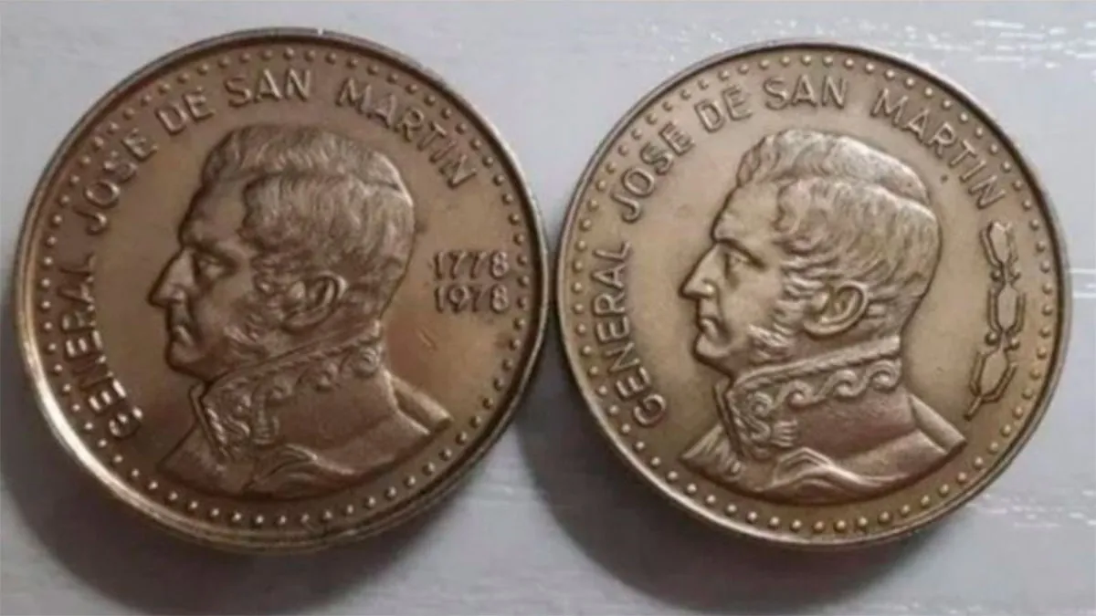 Según la historia de esta moneda, en 1978, cuando se cumplieron los 200 años del nacimiento del general José de San Martín, se acuñó una moneda de 100 pesos que presentaba el rostro de San Martín y, a su costado, las fechas 1778-1978.