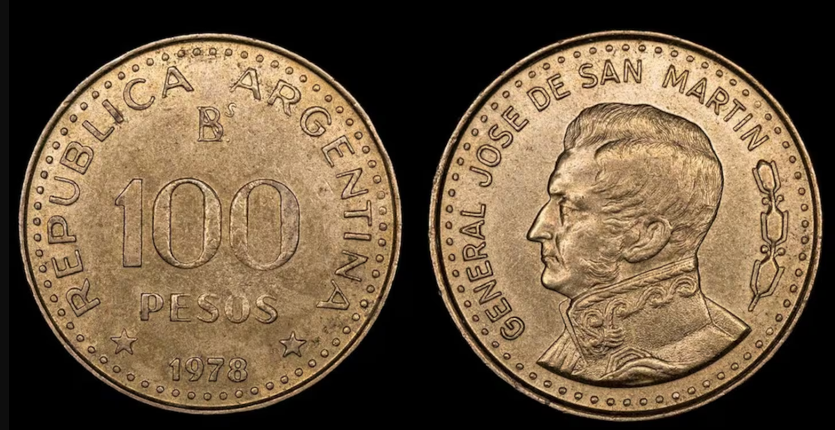Hay una moneda argentina que se vende a 1.250 dólares y que puede estar en muchos hogares argentinos. Esto se debe a que tuvo una gran circulación, a pesar de un error en su acuñación. Se trata de una moneda de 100 pesos del año 1979.